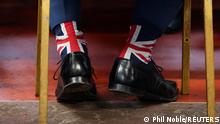 | Image caption | Με κάλτσες με τη σημαία της Βρετανίας είχε εμφανιστεί παλιότερα ο Νάιτζελ Φάρατζ | ||