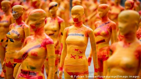 | Image caption | Η εικαστική εγκατάσταση «Broken» για τη βία κατά των γυναικών στην πλατεία Πότσνταμερ Πλατς του Βερολίνου | ||