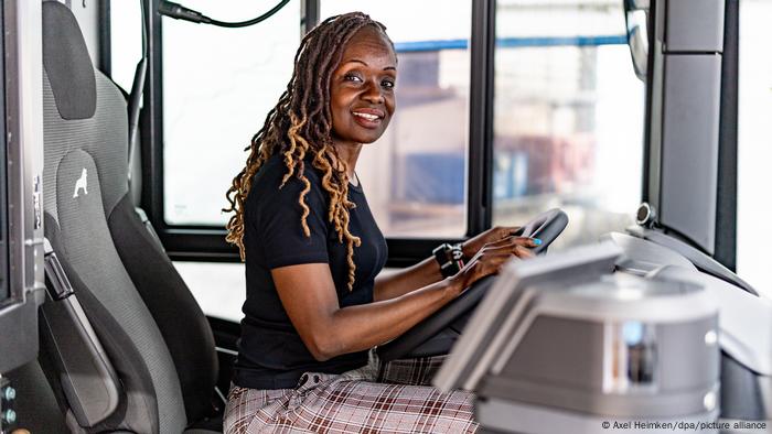 | Image caption | Srećna u Nemačkoj: Kenijka Milisent Aviti radi kao vozačica autobusa u Flensburgu | ||