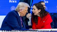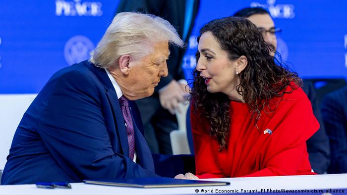 | Image caption | Donald Tramp i Vjosa Osmani u Davosu 22. januara 2026, prilikom osnivanja kontroverznog Odbora za mir | ||