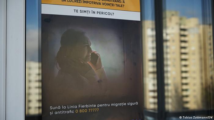 | Image caption | Plakat humanitarne organizacije La Strada u Kišinjevu reklamira telefonsku liniju za borbu protiv trgovine ljudima | ||