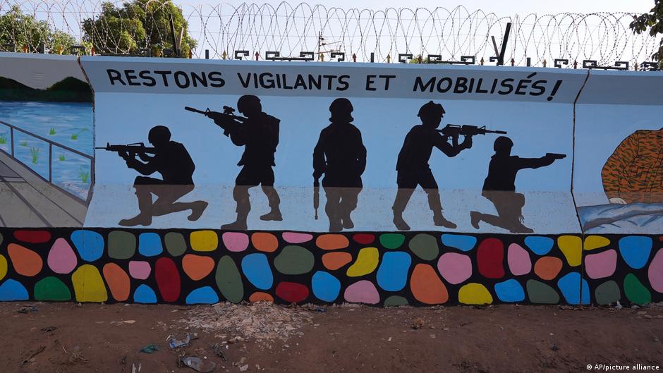 Ein Wandgemälde in der Hauptstadt Ouagadougou ruft dazu auf, wachsam und mobilisiert zu bleiben