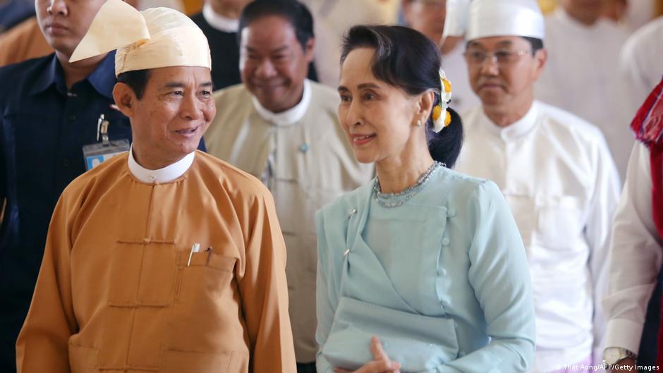 Die ehemalige Staatsführung von Myanmar, Präsident Win Myint (l.) und Premierministerin Aung San Suu Kyi (r.) im März 2018