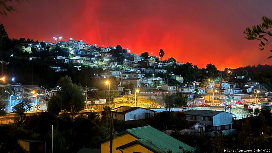 Die Flammen lodern am Horizont und bedrohen Siedlungen in Südchile. 20.000 Menschen müssen fliehen. Mindestens 16 Menschen kamen bislang ums Leben.