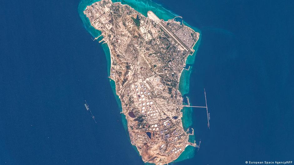Satellitenaufnahme der dem Iran vorgelagerten Insel Charg, über die 90 Prozent der iranischen Rohöl-Exporte abgewickelt werden (Archivbild)