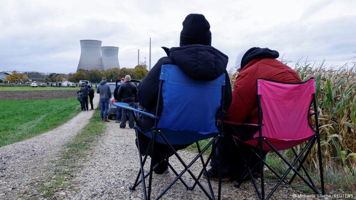 | Image caption | Gundremmingen 25 października 2025: czekanie na wysadzenie w powietrze dwóch wież chłodniczych elektrowni jądrowej | ||
