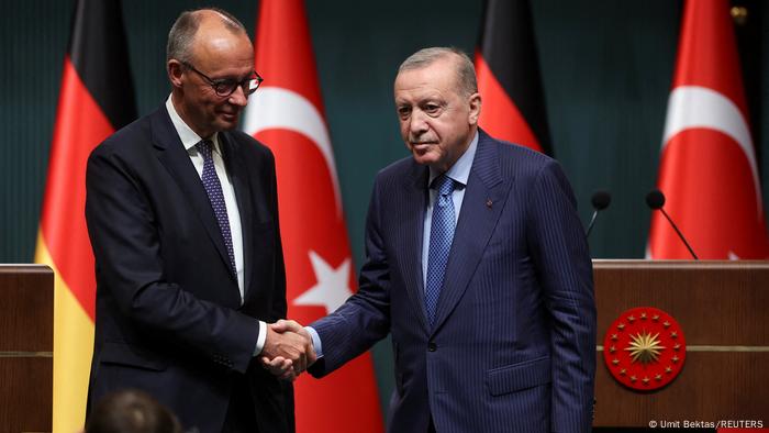 | Image caption | Kanclerz Friedrich Merz nalega na powroty Syryjczyków do własnego kraju | ||